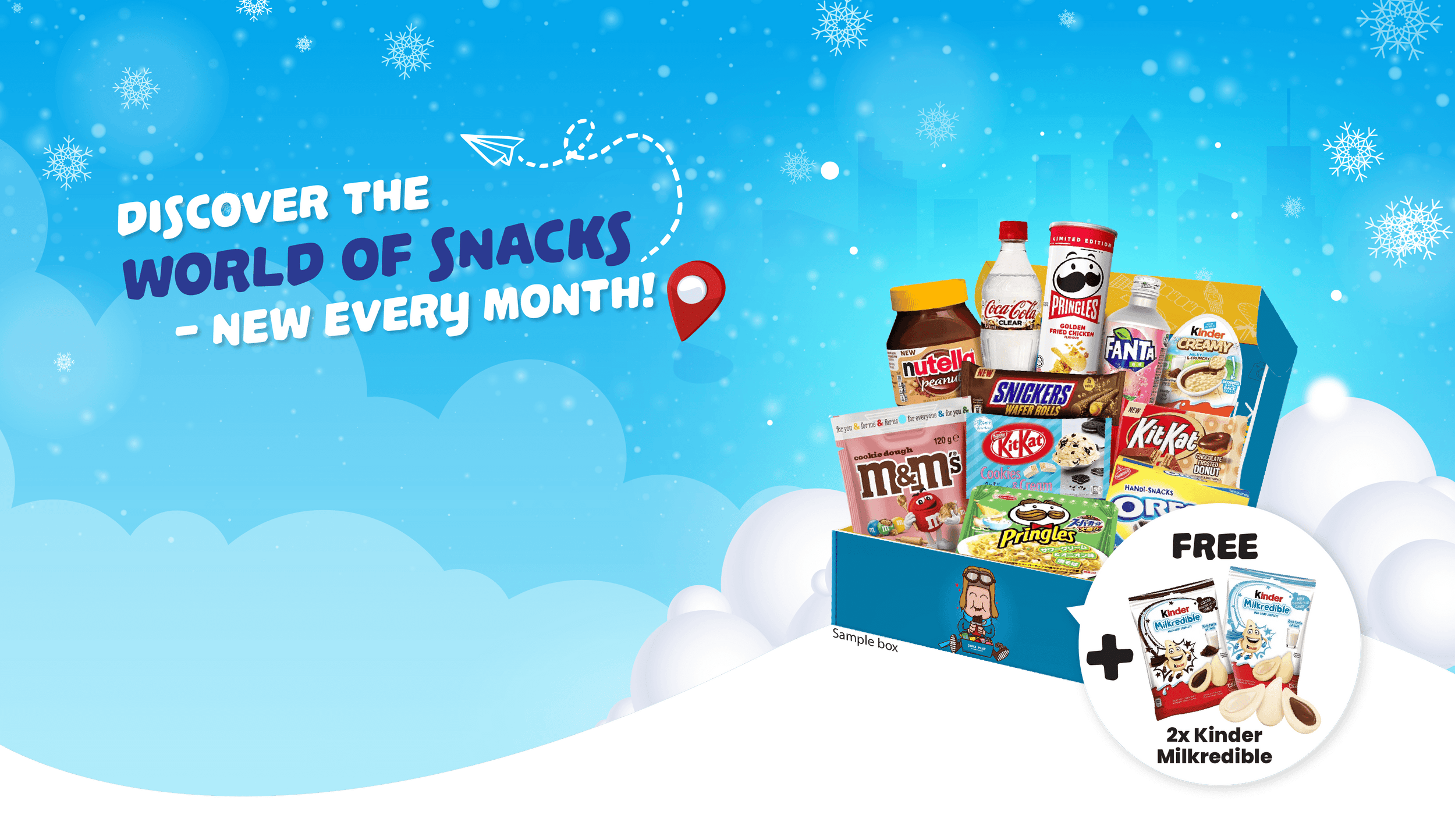 Zdobądź comiesięczne przekąski z całego świata. Co miesiąc nowy kraj, nowe przekąski i nowa smaczna przygoda ekskluzywnych produktów, których nie można łatwo znaleźć w lokalnym sklepie.